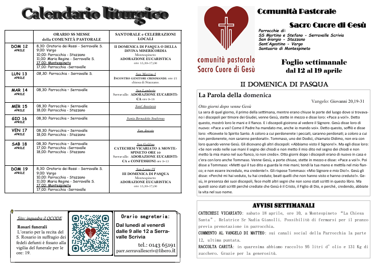 | Foglio Settimanale dal 12 al 19 Aprile 2026 |