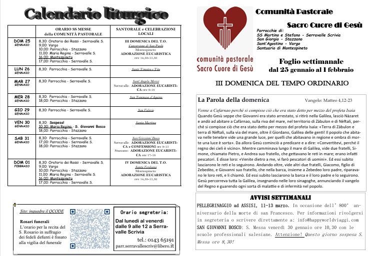 | Calendario Liturgico – Foglietto settimanale |