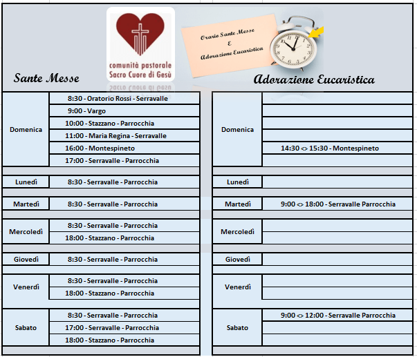 - Serravalle: ore 8:30 Santa Messa – ore 16:30 Rosario e Vespri