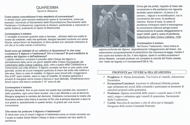 | >QUARESIMA – SPUNTI PER LA RIFLESSIONE |
