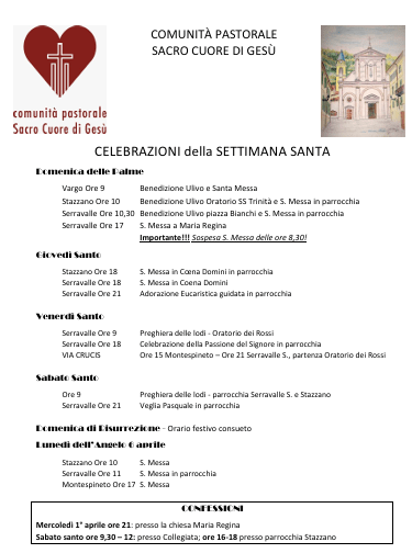 - Serravalle: ore 8:30 Santa Messa – ore 16:30 Rosario e Vespri